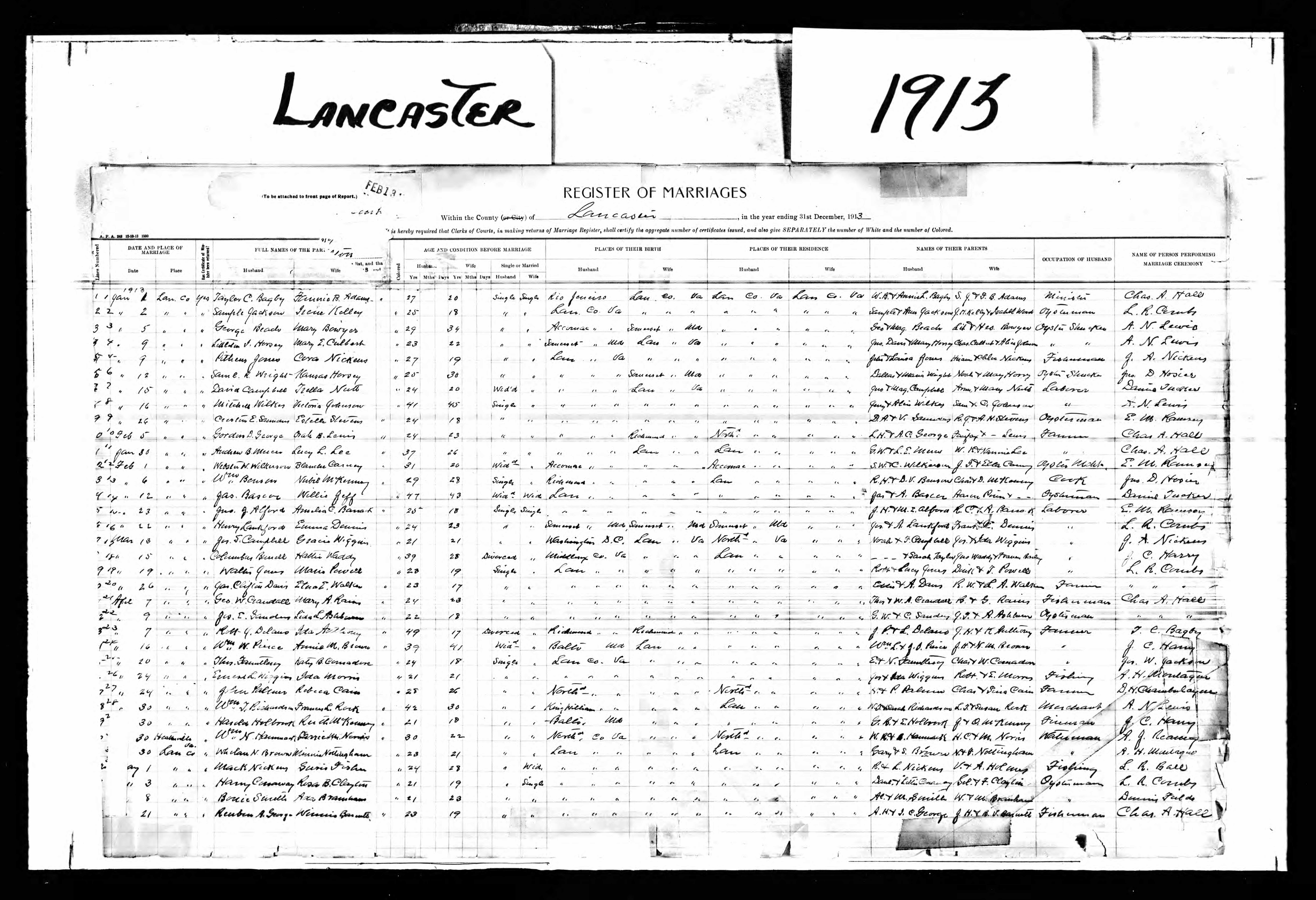 - 1913 Marriage