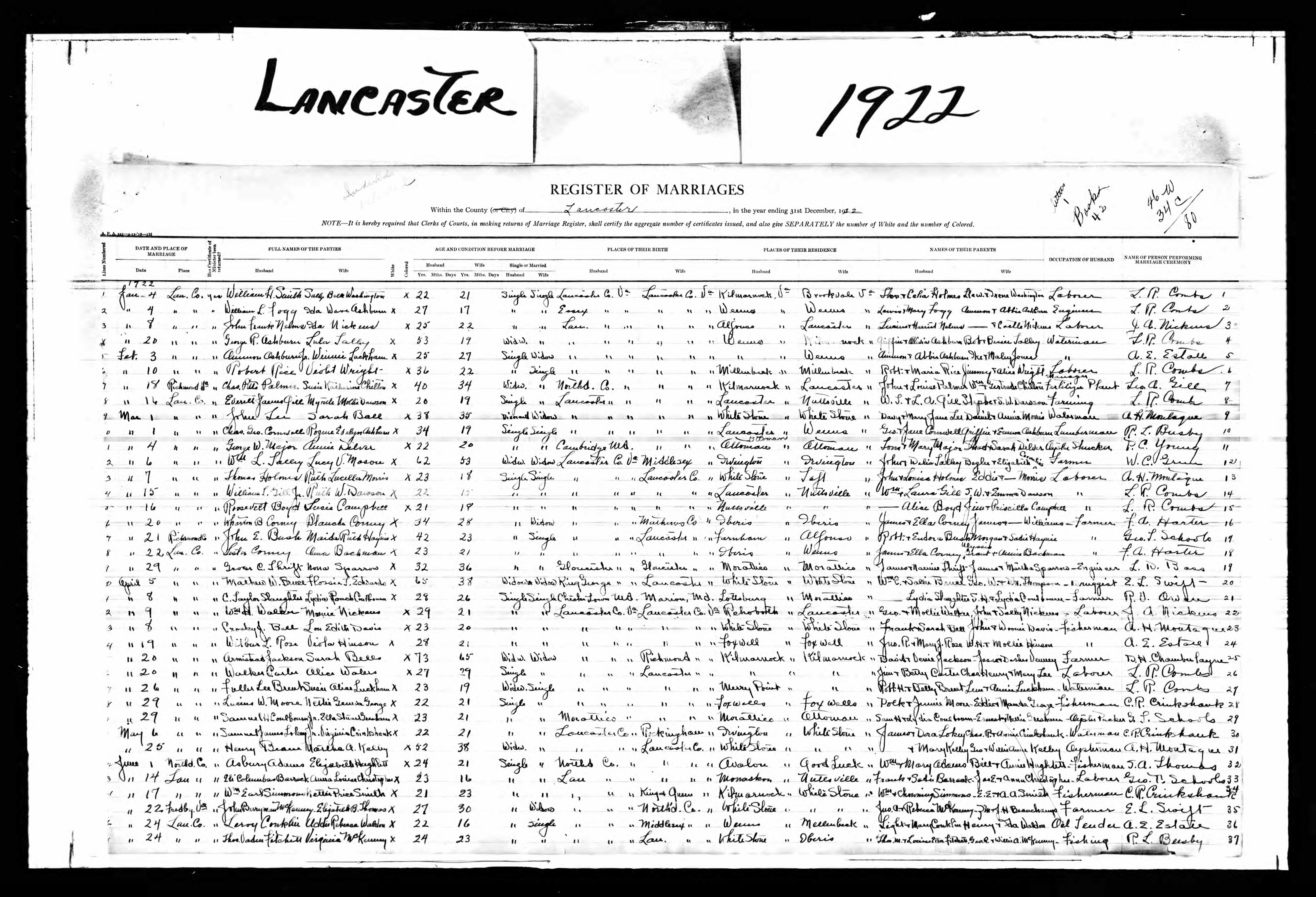 - Virginia, Marriage Registers, 1853–1935. Library of Virginia, Richmond, Virginia.