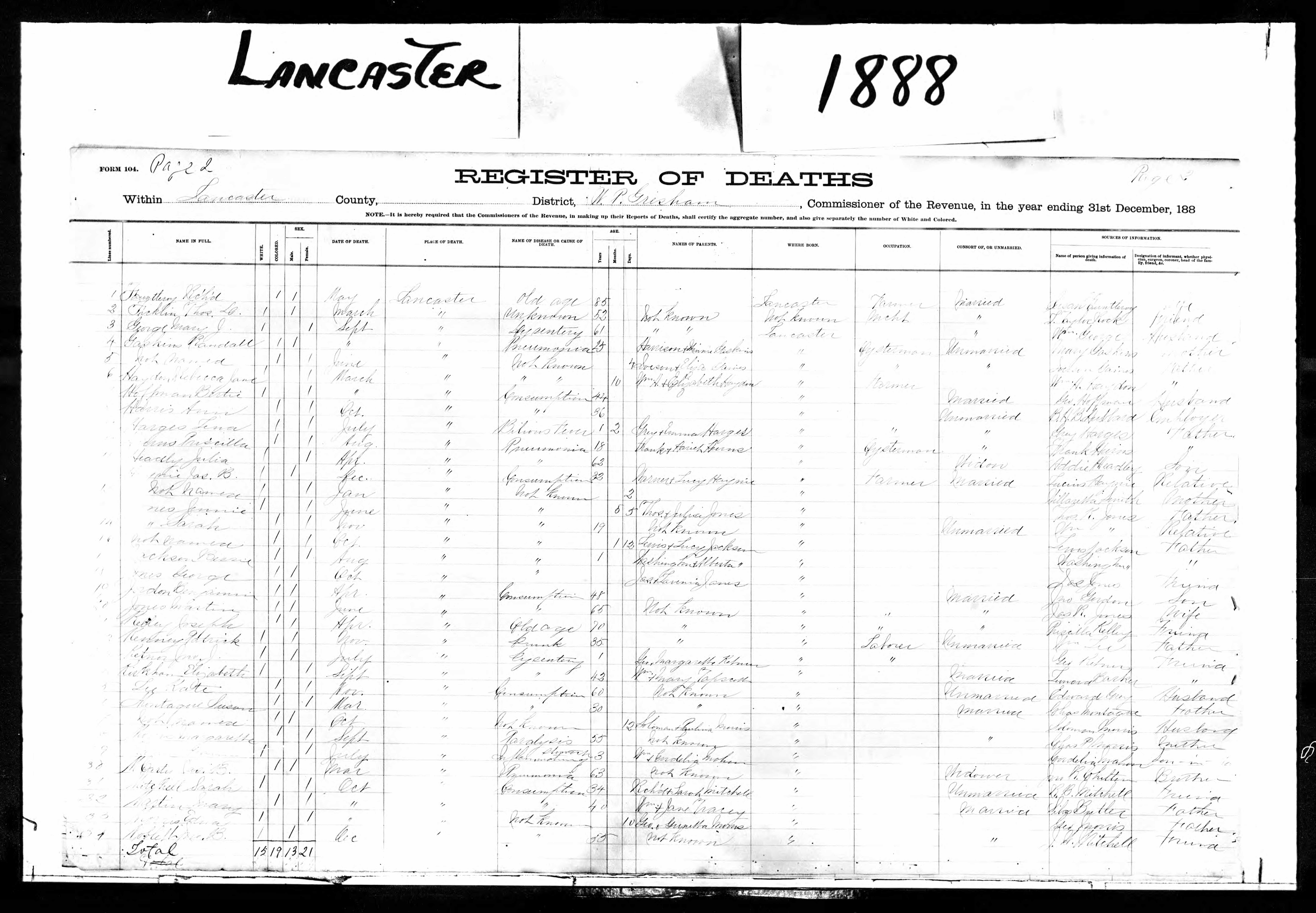 Juliet died in April of 1888. The Lancaster County Death Register recorded her age as 62 and cause of death as pneumonia. Unsourced claims on-line suggest that she may be buried at Lebanon Baptist Church.