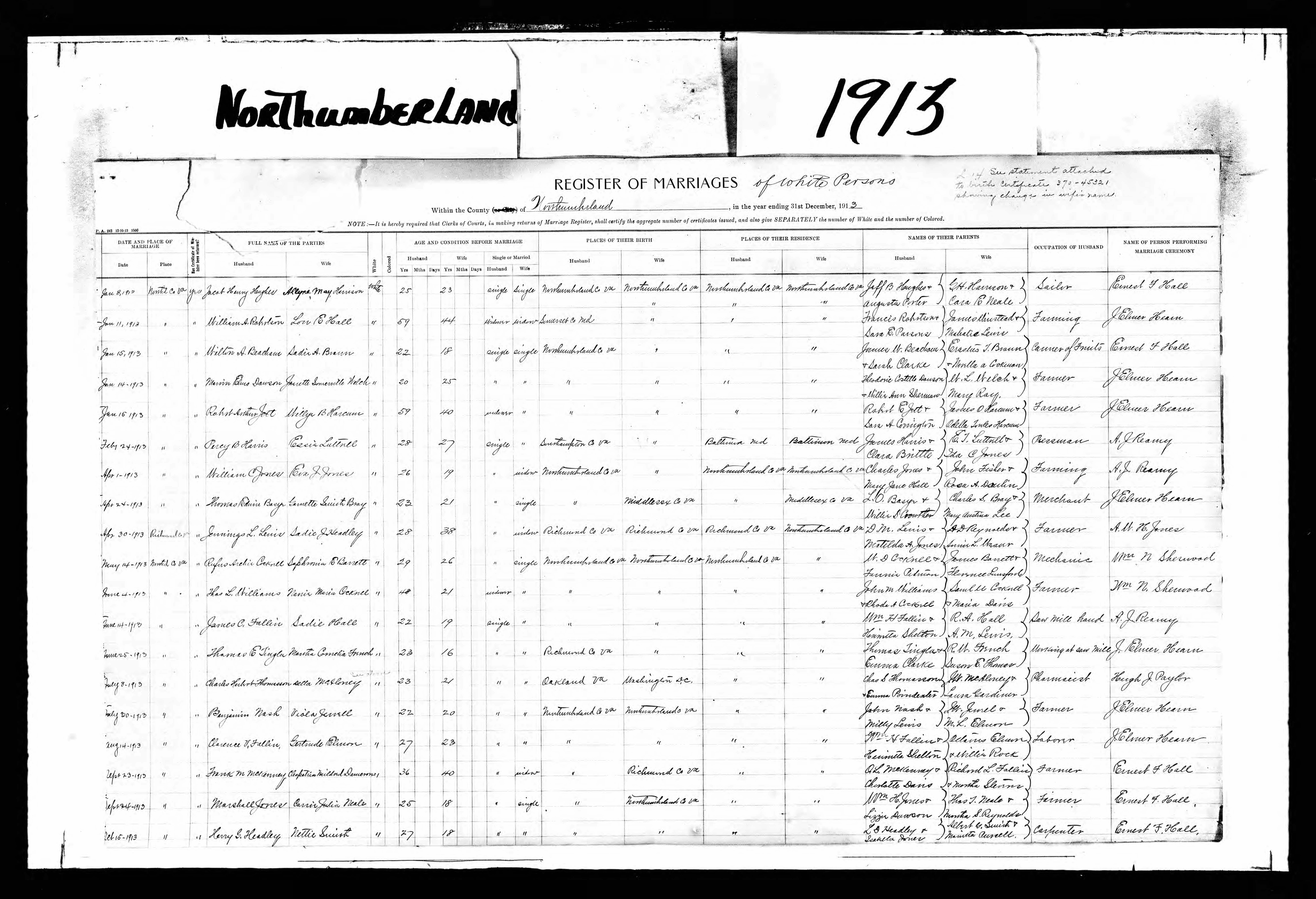 - Virginia, Marriage Registers, 1853–1935. Library of Virginia, Richmond, Virginia.
